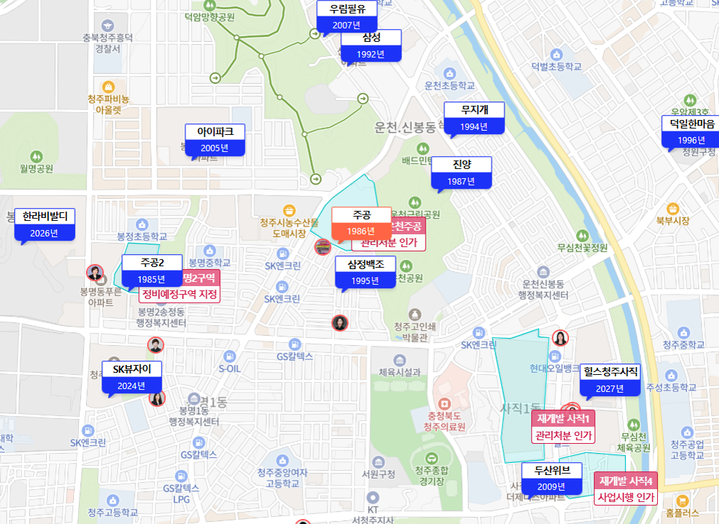 해당 단지는 청주 운천주공 주택재건축 정비사업입니다.