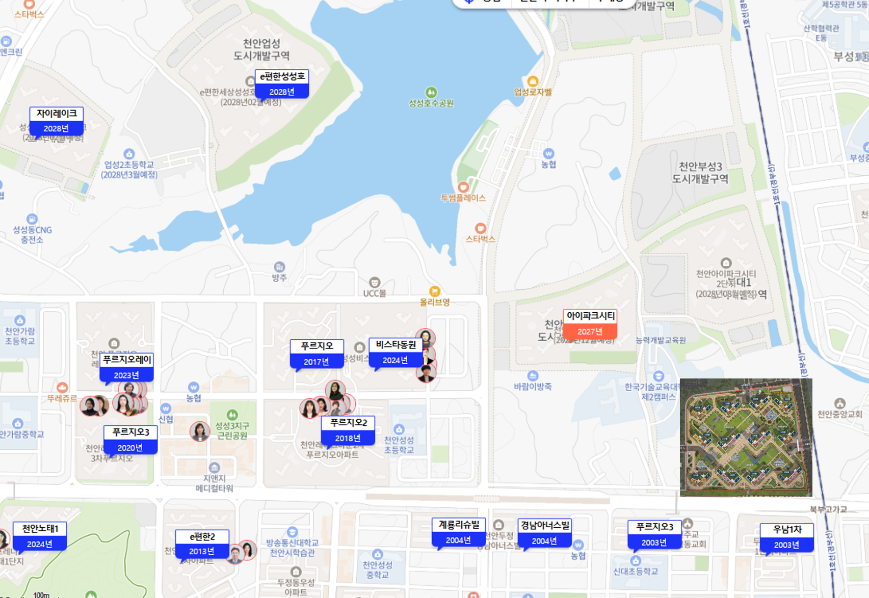 천안 휴먼빌 퍼스트시티는 성성호수공원 일대의 발전 잠재력은 확실하지만, 신흥 주거벨트 중심축과의 애매한 거리감이 아쉬움으로 적용이 되는 것 같습니다.